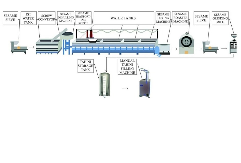 Producing tahini involves multiple stages, each requiring specialized machinery. AYS Food Machinery offers a complete range of equipment, including: